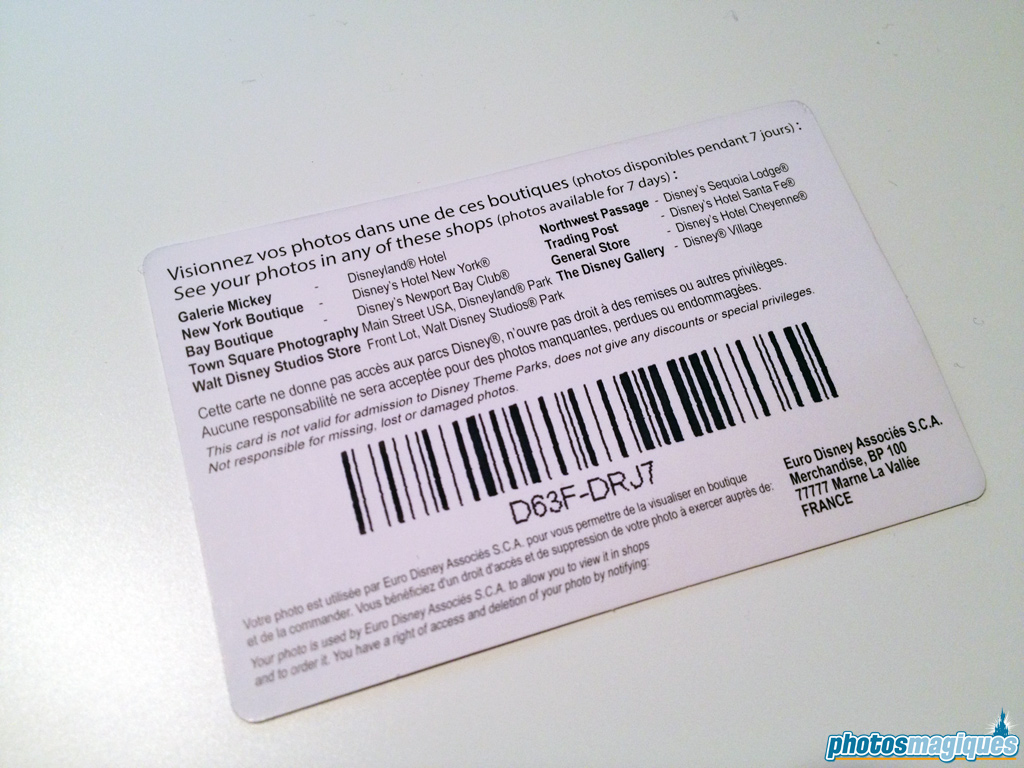 This is what the former Photo Souvenir pass used to look like. The backside is almost similar to that of the Disney Photopass.